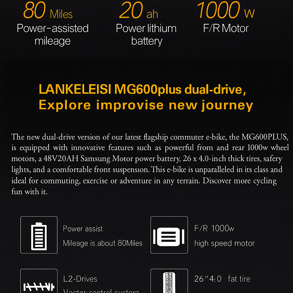 With dual 2000W motors, easily power up any hill without breaking a sweat. This electric bike ensures you conquer every incline with ease, making your commute or adventure smooth and enjoyable.